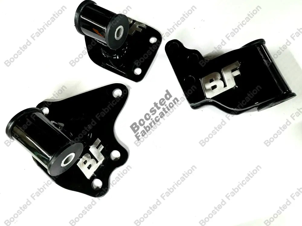 2g DSM Auto Engine Mount Set. This set includes Timing Side, Transmission Side, And Rear Transmission Mount. This set does NOT include the front Roll stop because we offer crossmembers with the front Roll stop integrated into them.