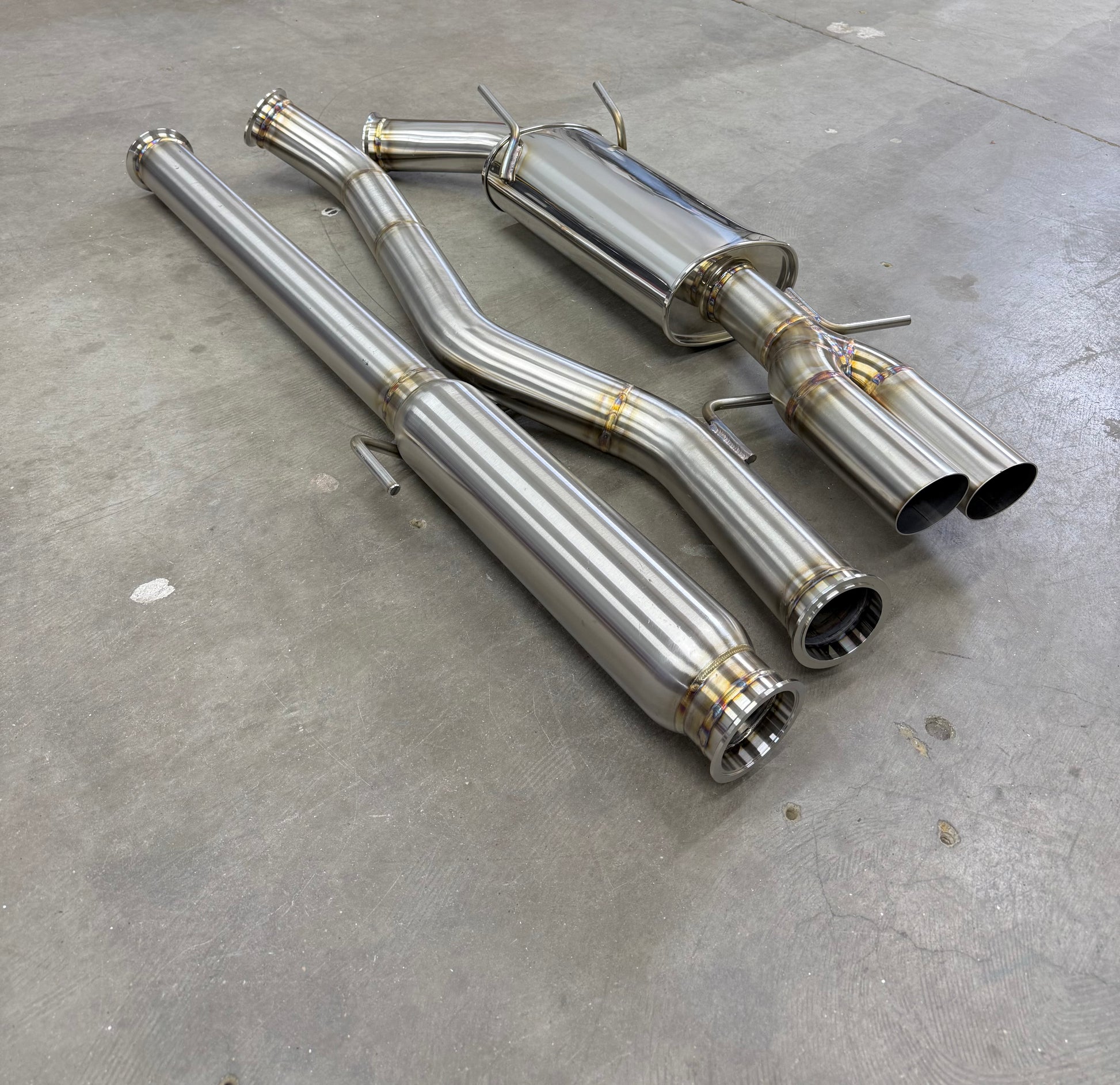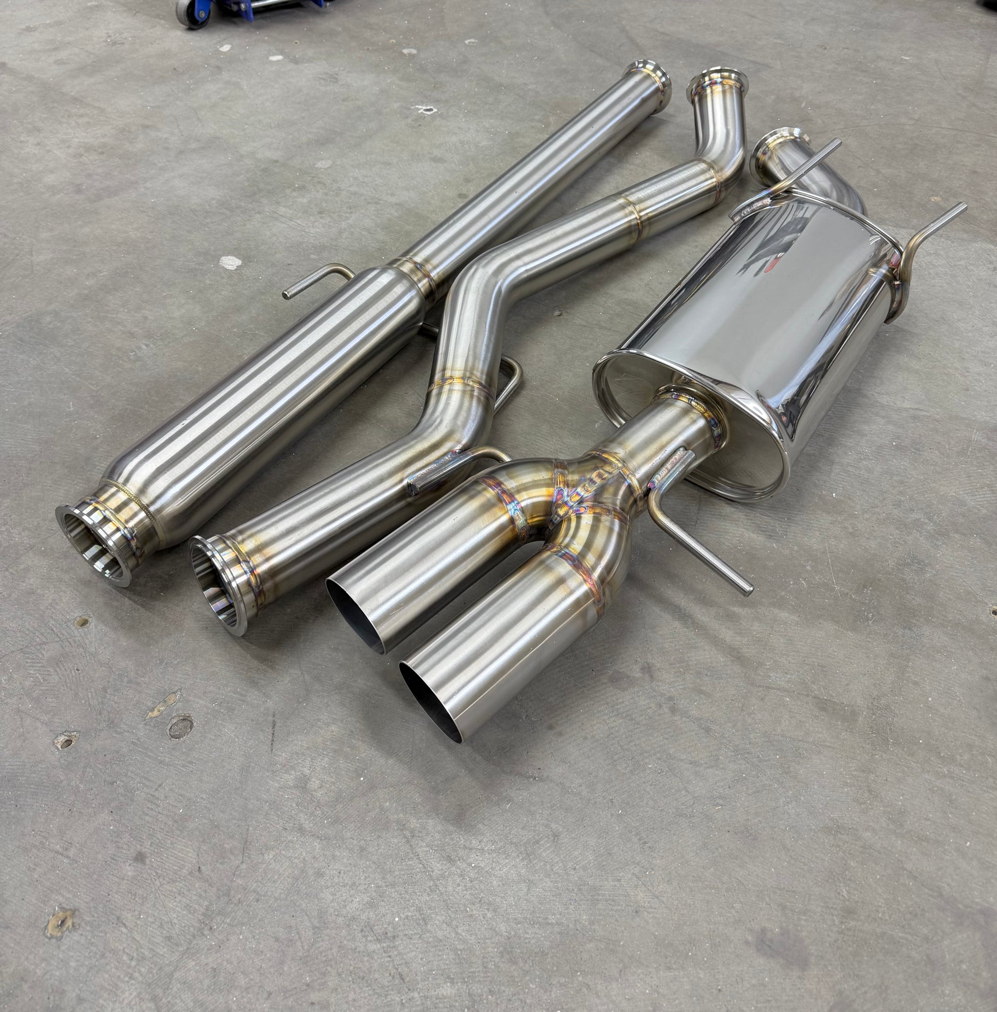 This is an exhaust system that goes from the downpipe back and replaces all the traditional 2-bolt flanges with V-band assemblies to provide better sealing throughout the system.